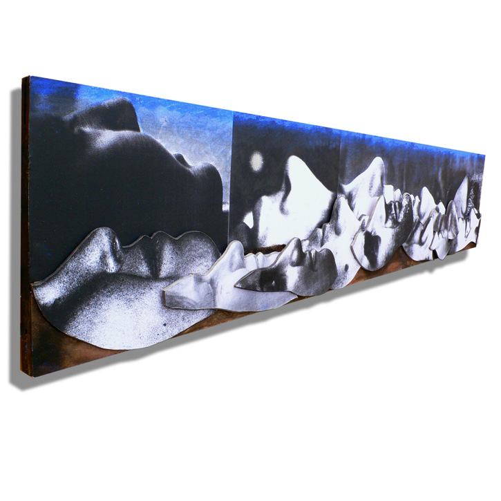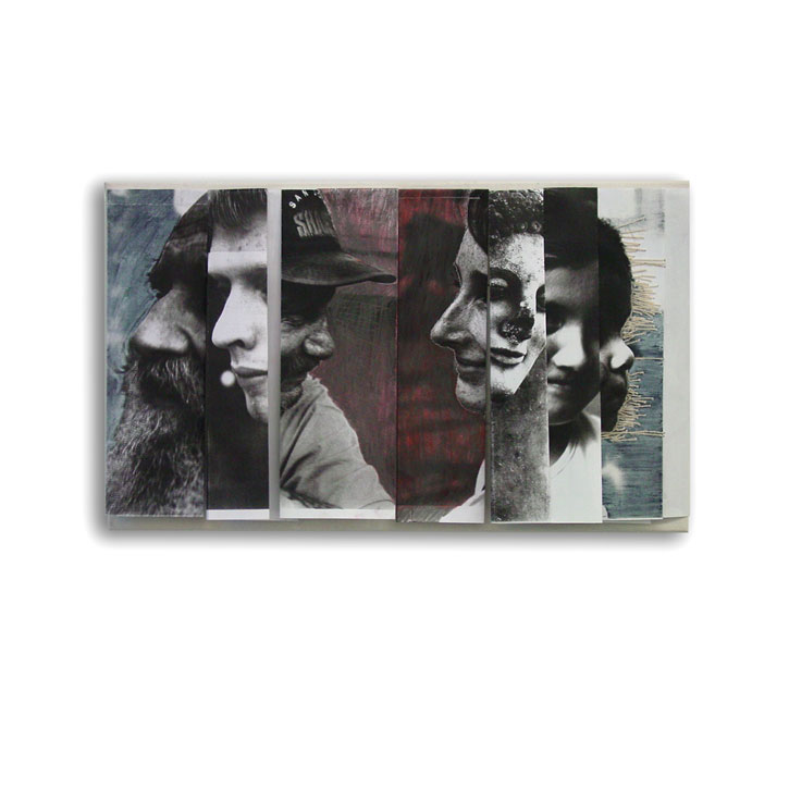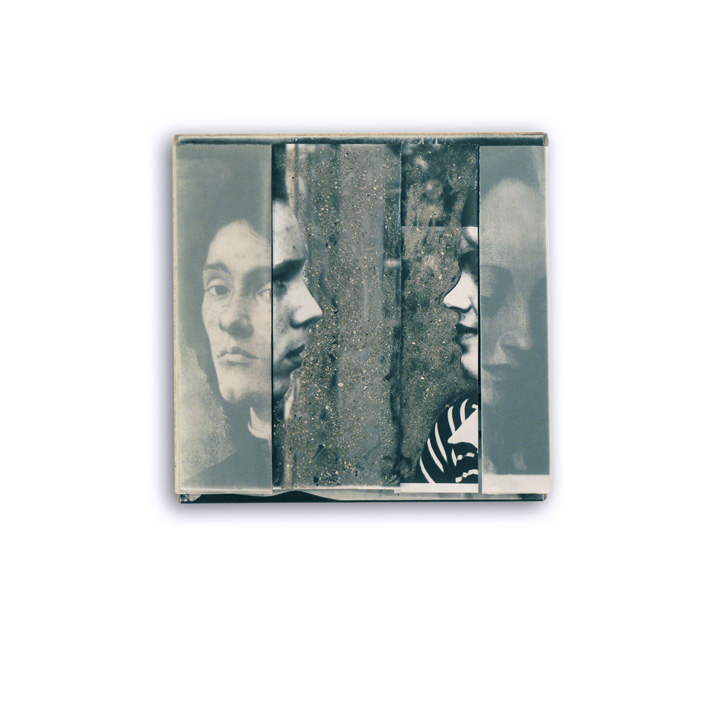 Papier, bedruckt, bemalt, gefaltet; Pastell; Acryl; Spiegel; auf Holz.