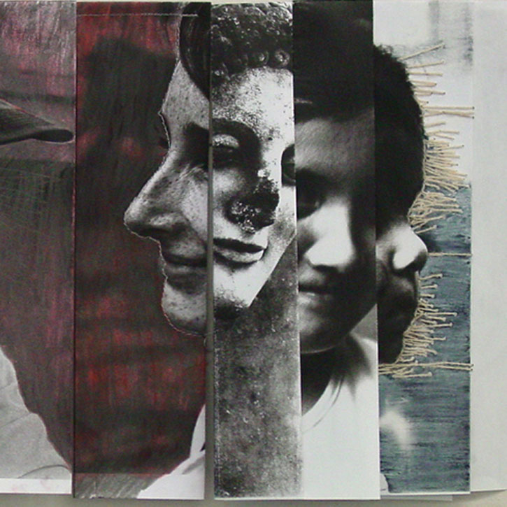 Papier, bedruckt, bemalt; gefaltet, genäht; Pastell; auf Leinwand.