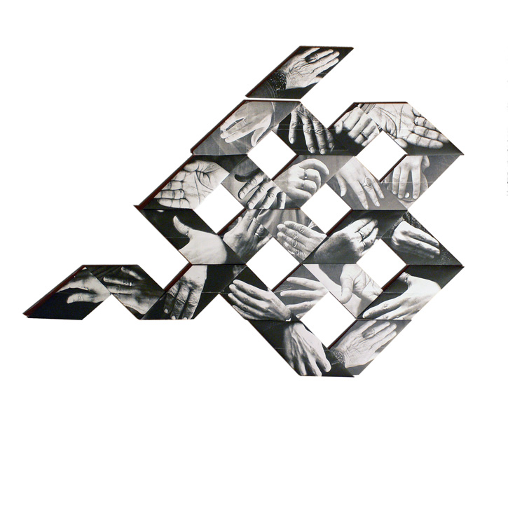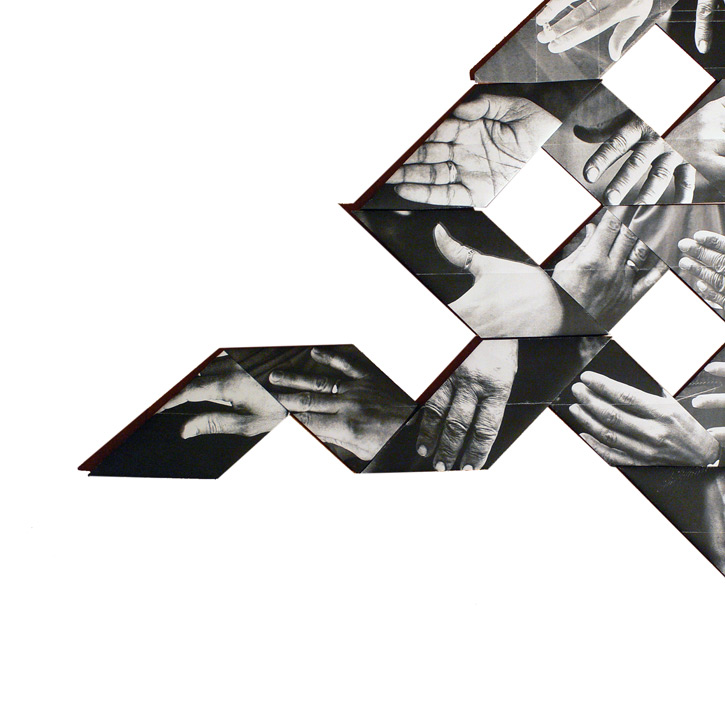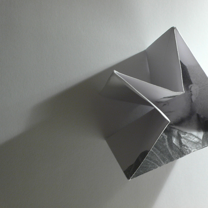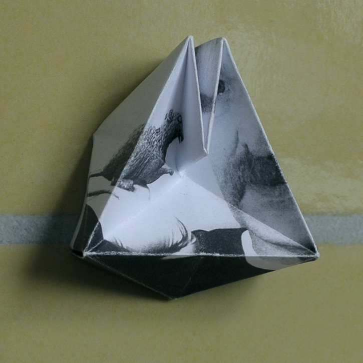 Papier, bedruckt, gefaltet und 9 Teile zusammen genäht.