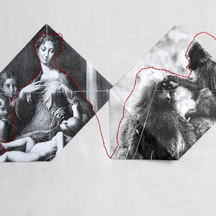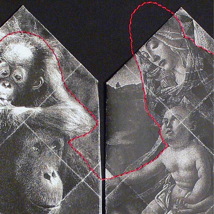 Papier, bedruckt, gefaltet und genäht; auf Baumwolle